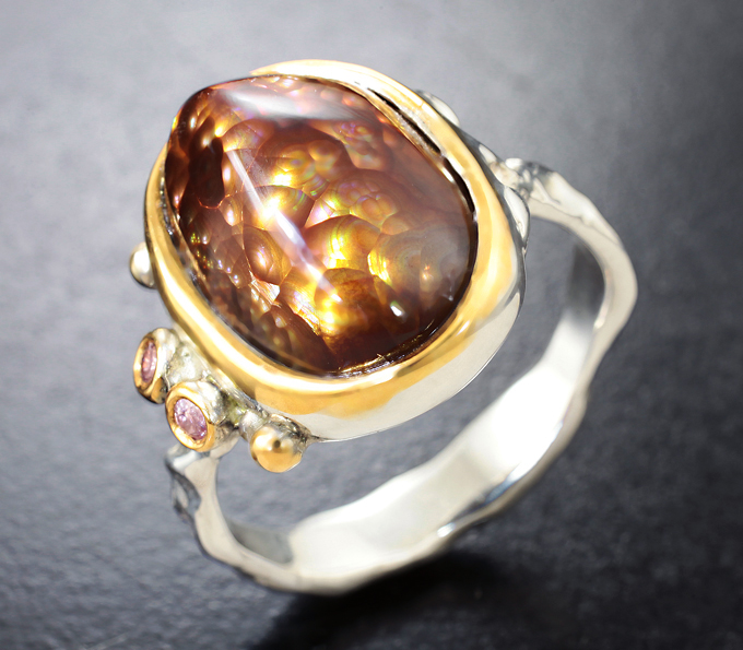 Комплект с мексиканским огненным агатом 21,52 карата и розовым сапфирами