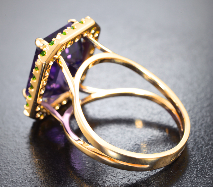 Кольцо с чистейшим уругвайским аметистом 7,63 карата и диопсидами