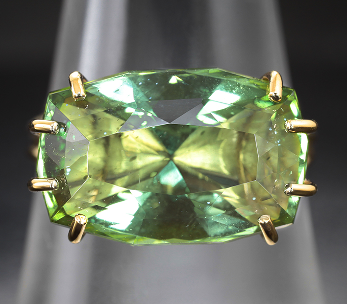 Кольцо с крупным полихромным апатитом авторской огранки 9,79 карата