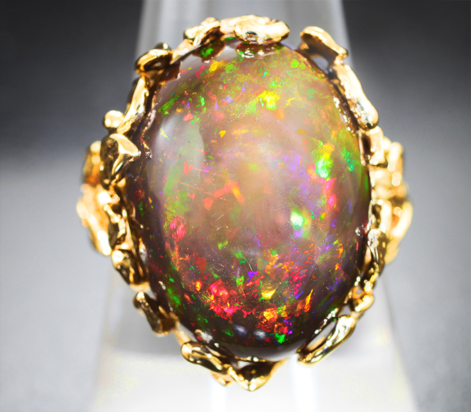 Кольцо с кристаллическим черным опалом 17,14 карата