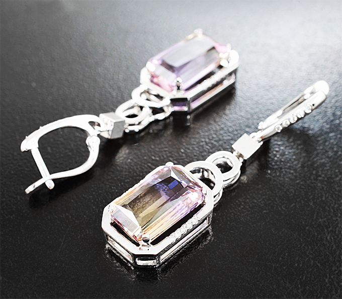 Вашему вниманию предлагается комплект (кольцо + серьги) из белого золота 585 пробы с чистейшими аметринами и бриллиантами! Диаметр дополнительной инкрустации 1,1 мм. Вес комплекта 16,37 г.