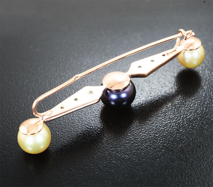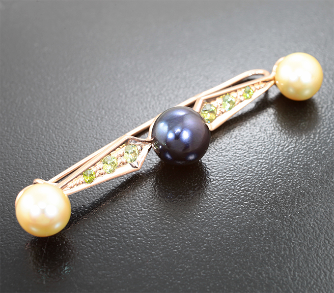 Брошь с цветным морским жемчугом 14,56 карата и уральскими демантоидами