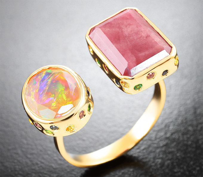 Комплект с родонитами 20,66 карата, ограненными эфиопскими опалами 4,13 карата, сапфирами и цаворитами