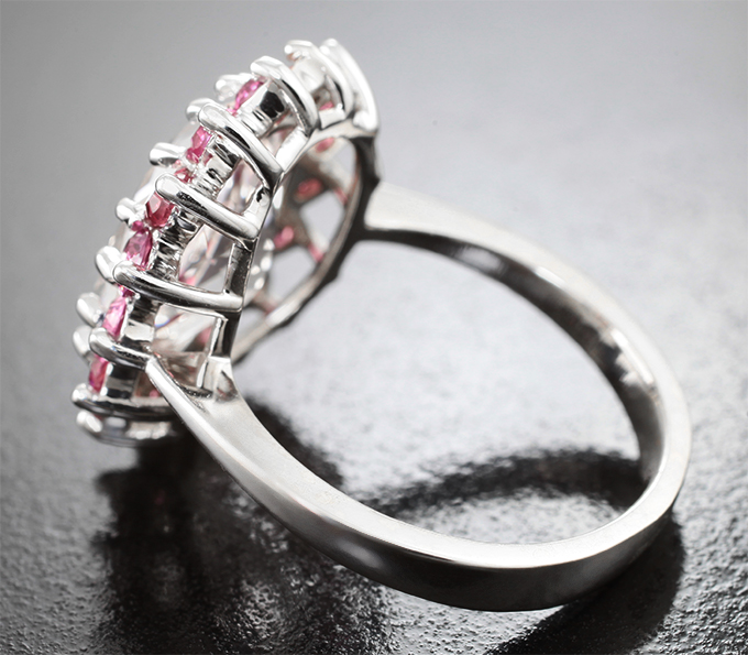 Кольцо с данбуритом высокой чистоты 5,53 карата и розовыми шпинелями