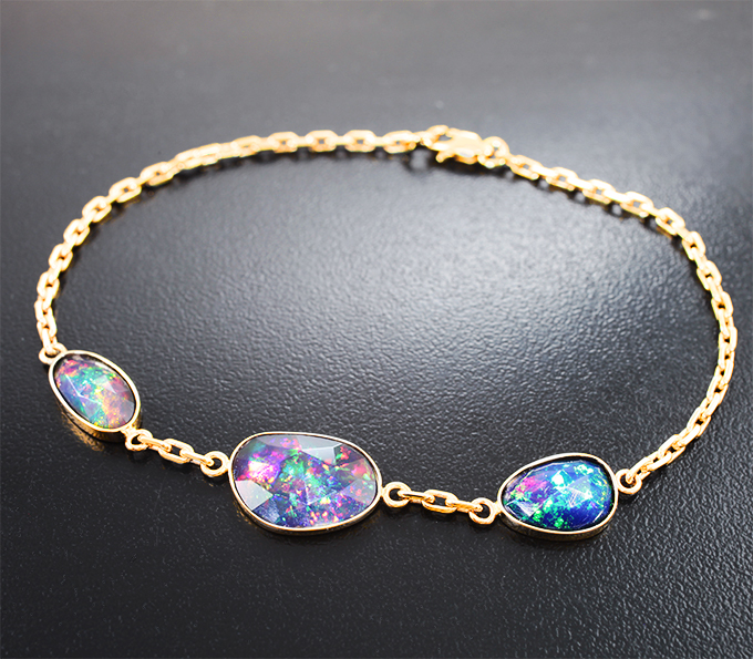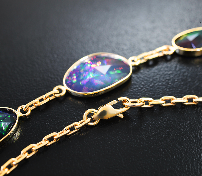 Браслет с яркими черными опалами авторской огранки 4,36 карата