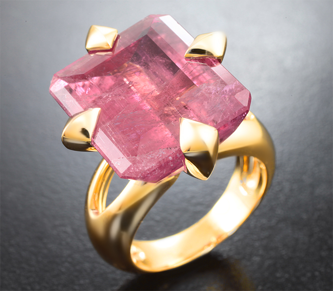 Кольцо с крупным ярко-розовым турмалином 23,84 карата
