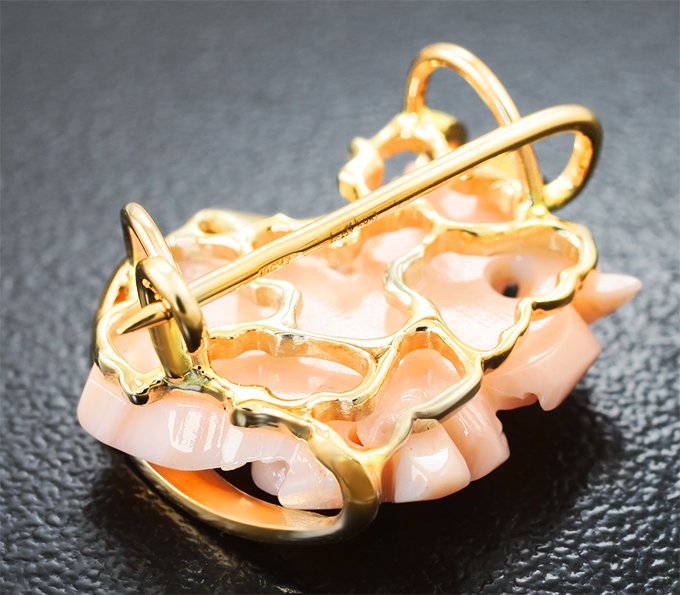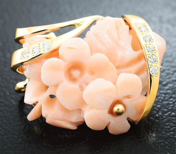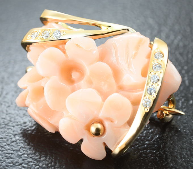 Брошь/кулон с резным solid кораллом 6,05 карата и бриллиантами