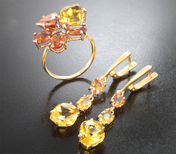Комплект с сапфирами, гелиодорами, сфалеритом и спессартинами