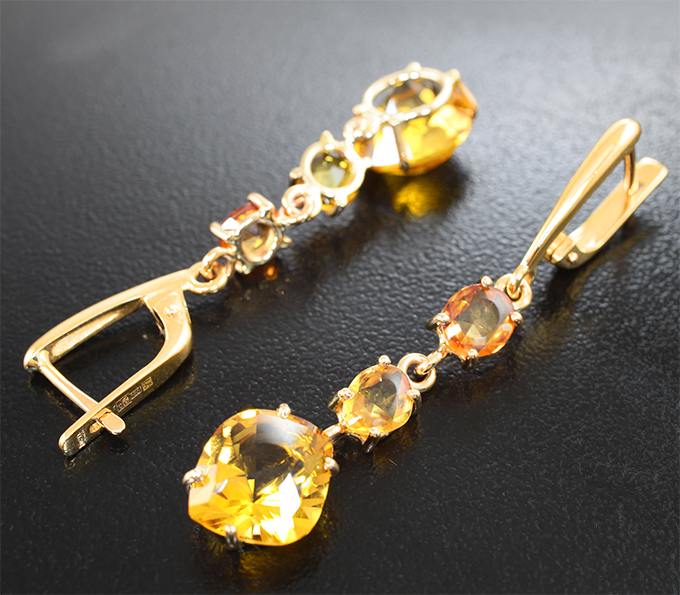 Вашему вниманию предлагается комплект (кольцо + серьги) из желтого золота 585 пробы с сапфирами, гелиодорами, сфалеритом и спессартинами! Вес комплекта 12,29 г.