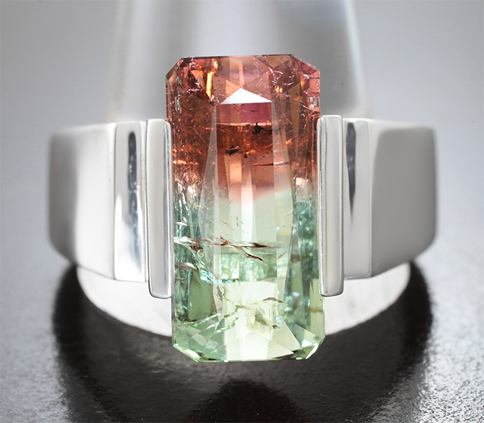 Кольцо с насыщенным арбузным турмалином 11,07 карата