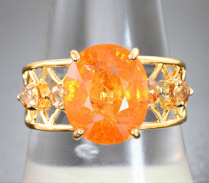 Кольцо с крупным 6,13 карата и малыми спессартинами «фанта»