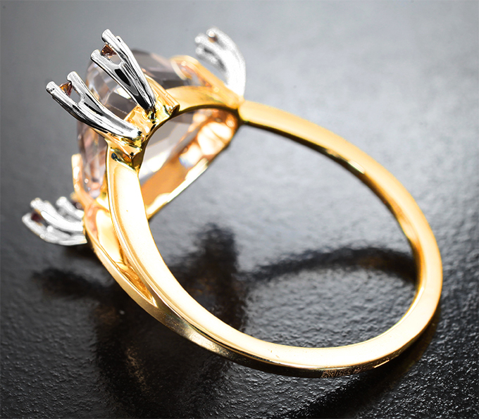 Кольцо с полихромным кунцитом авторской огранки 8,15 карата и розовыми бриллиантами