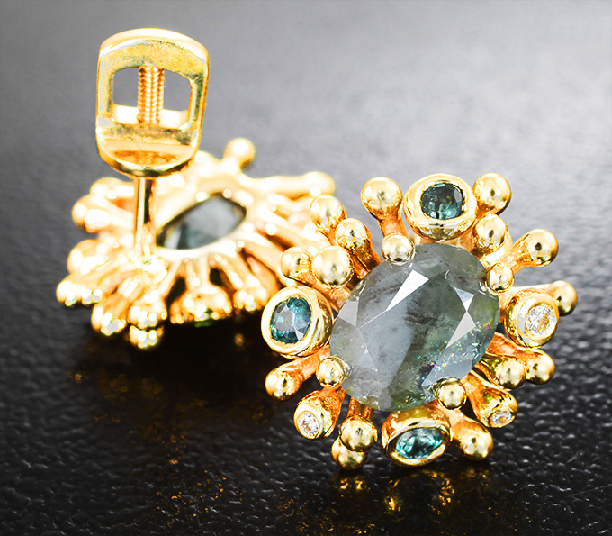 Серьги с уральскими александритами 3,69 карата и бриллиантами