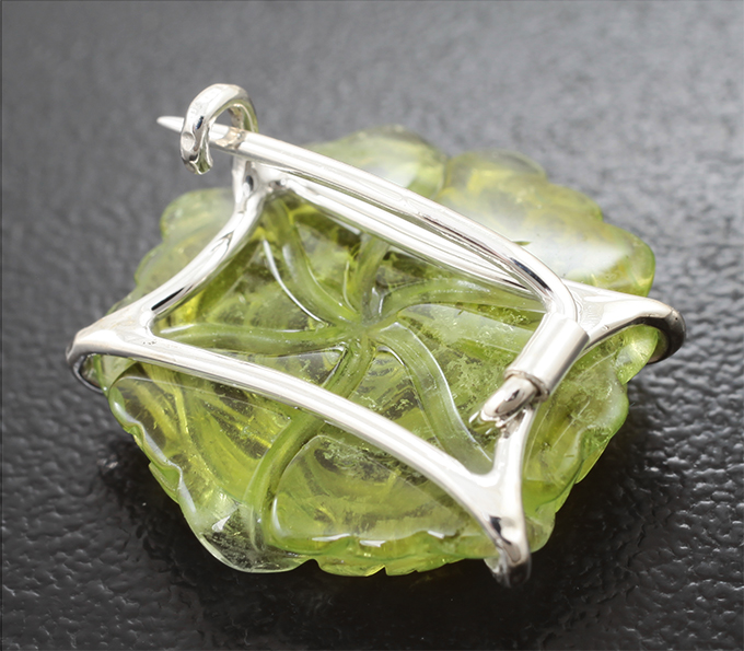 Брошь с резным зеленым турмалином 11,67 карата