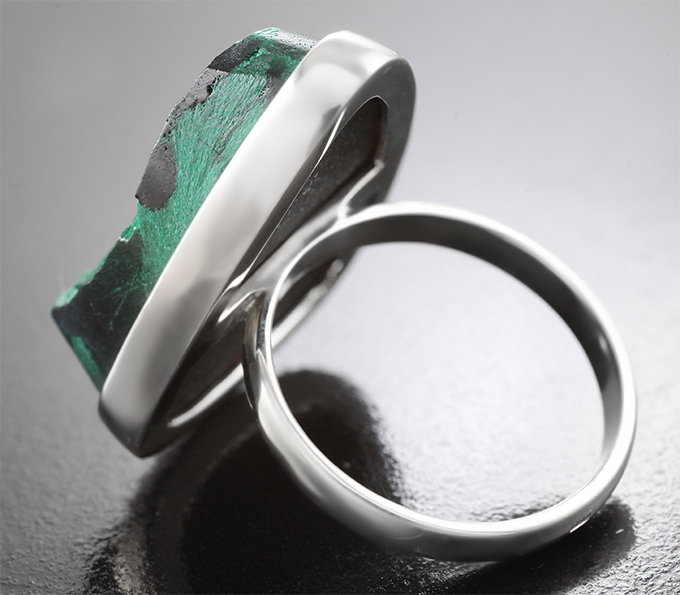 Вашему вниманию предлагается кольцо из стерлингового серебра (925 проба) c плисовым уральским малахитом на долерите! Площадка 30 х 24 мм, высота 9 мм. Вес изделия 13,41 г. Размер 19. Ниже приводятся ювелирные характеристики вставки.
