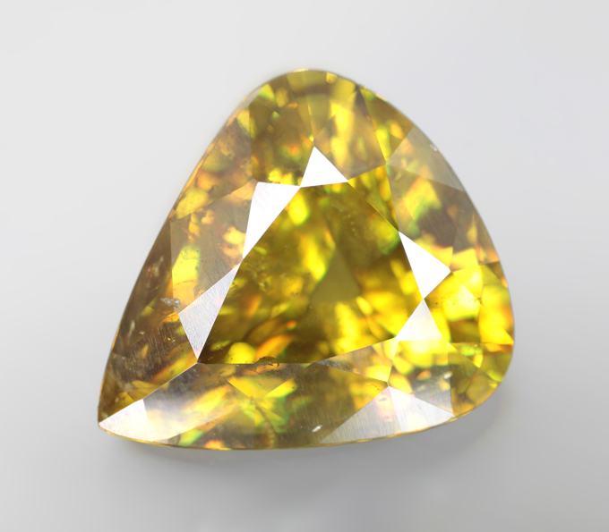 Кулон с крупным желто-зеленым сфеном 7,69 карата и бесцветными цирконами