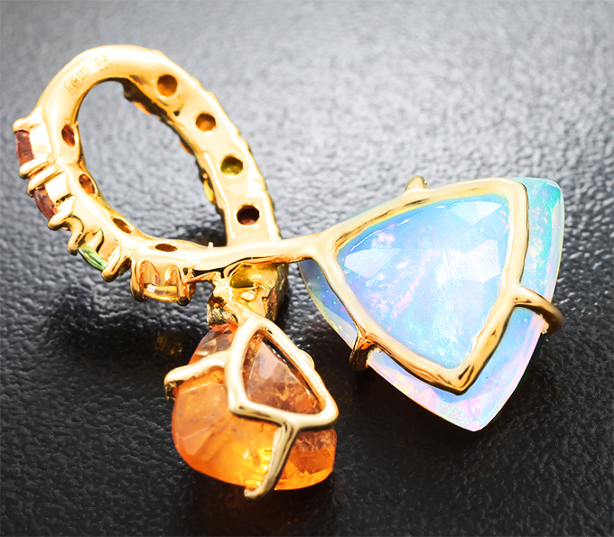 Кулон с оранжевым содалитом 3,05 карата, ограненным эфиопским опалом 5,54 карата и разноцветными сапфирами