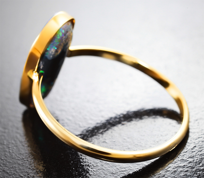 Вашему вниманию предлагается кольцо из желтого золота 585 пробы c австралийским черным опалом! Площадка 16 х 9 мм, высота 4 мм. Вес изделия 2,17 г. Размер 20,5. Ниже приводятся ювелирные характеристики вставки.