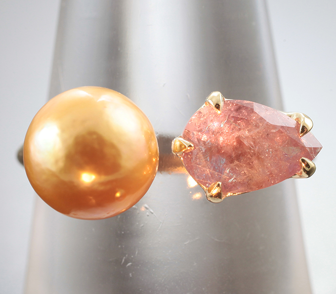 Кольцо с уральским александритом 1,07 карата и золотистой морской жемчужиной 3,6 карата