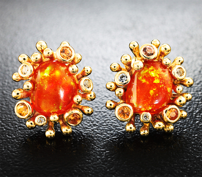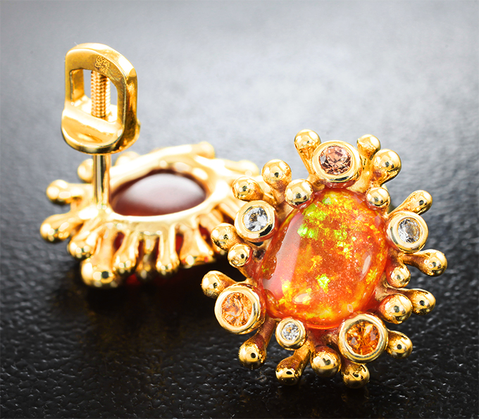 Комплект с кристаллическими эфиопскими опалами 4,92 карата, оранжевыми сапфирами и бесцветными цирконами