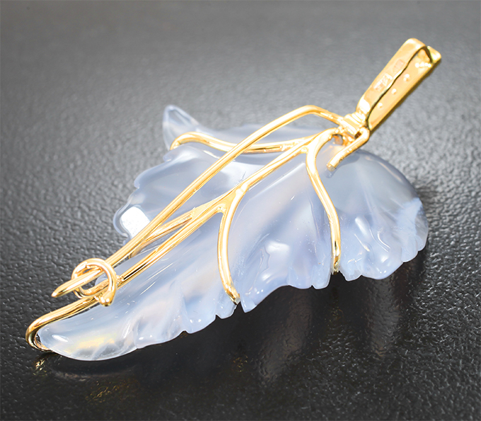 Брошь/кулон с полупрозрачным нежно-сиреневым резным халцедоном 26,21 карата и танзанитами