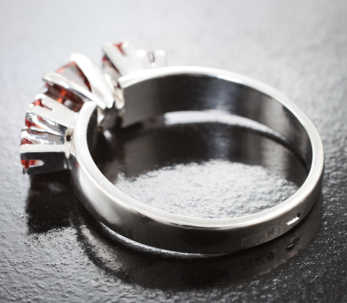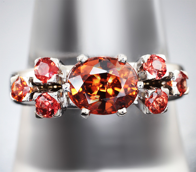 Вашему вниманию предлагается кольцо из белого золота 585 пробы c оранжевым цирконом высокой чистоты и сапфирами! Диаметр дополнительной инкрустации 2,5 мм. Площадка 19 х 7 мм, высота 6 мм. Вес изделия 5,21 г. Размер 18. Ниже приводятся ювелирные характеристики центральной вставки.