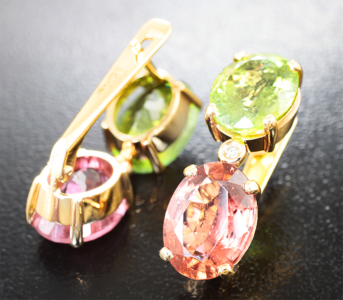 Серьги с разноцветными турмалинами 9,89 карата и бриллиантами