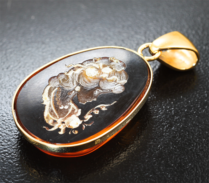 Кулон с резным янтарем 9,08 карата