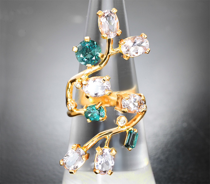 Кольцо с грандидьеритами 1,1 карата, морганитами и бриллиантами
