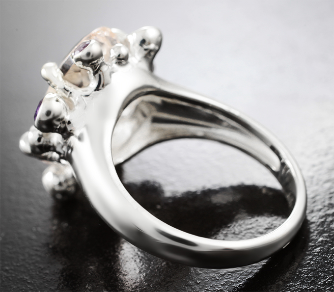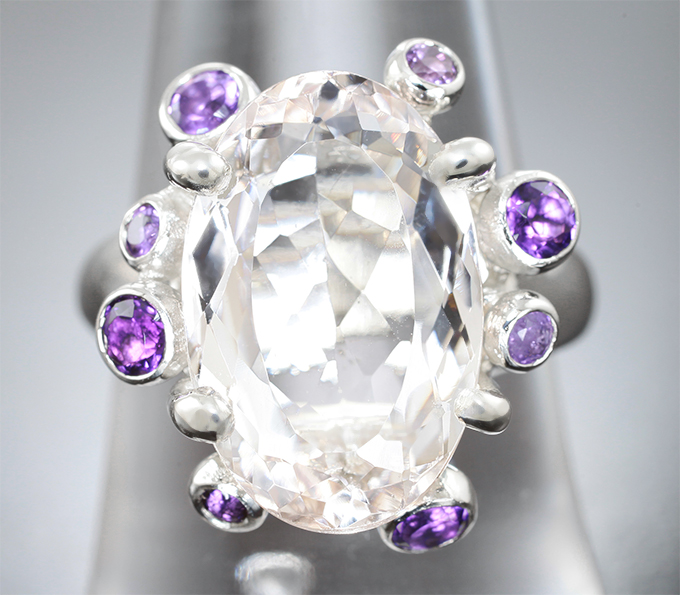 Кольцо с морганитом высокой чистоты 6,5 карата и аметистами