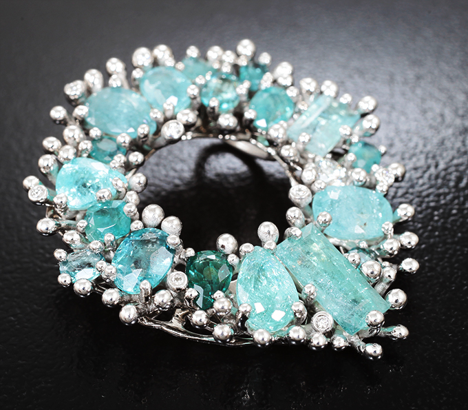 Кулон с грандидьеритами 2,04 карата, параиба турмалинами 5,23 карата и бриллиантами