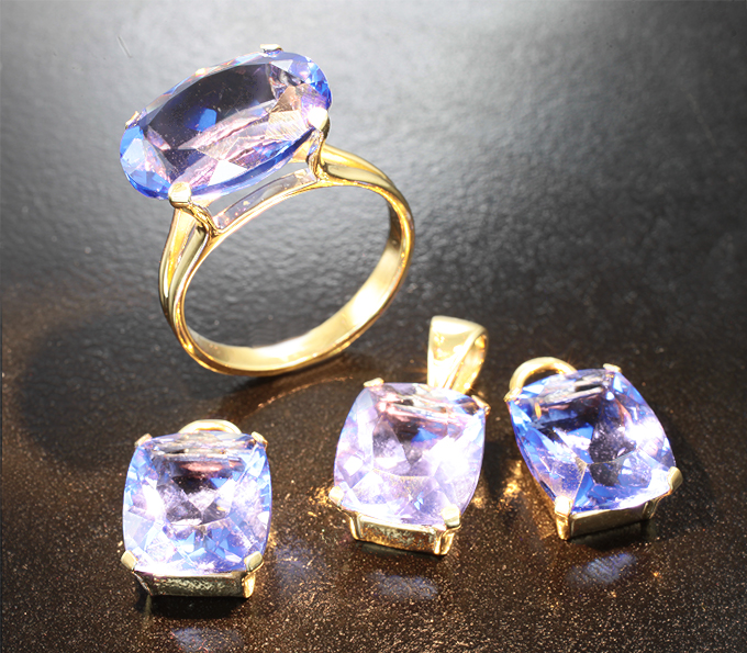 Вашему вниманию предлагается комплект (кольцо + серьги + кулон) из стерлингового серебра (925 проба) с флюоритами со сменой цвета! Изделия позолочены. Вес комплекта 10,87 г.