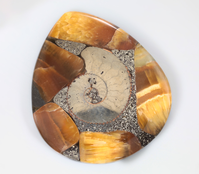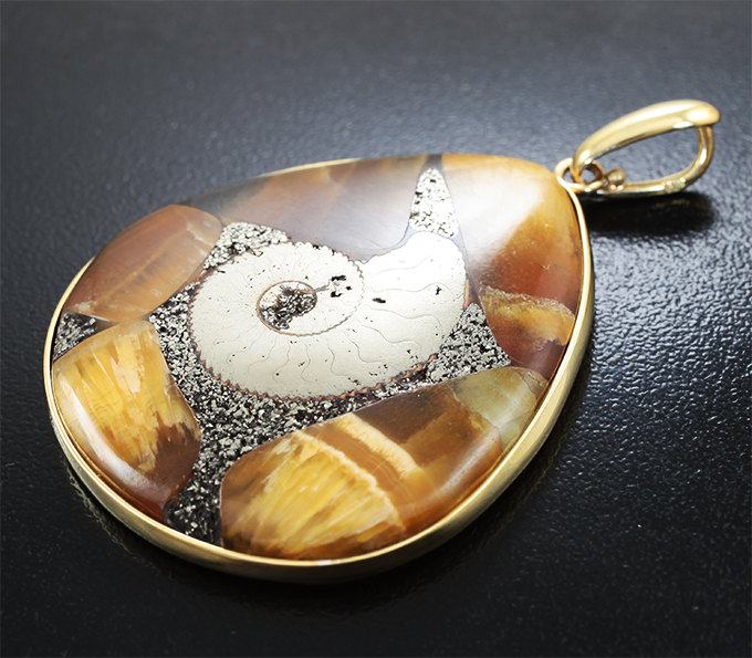 Кулон с пиритовым аммонитом с симбирцитом 90,43 карата