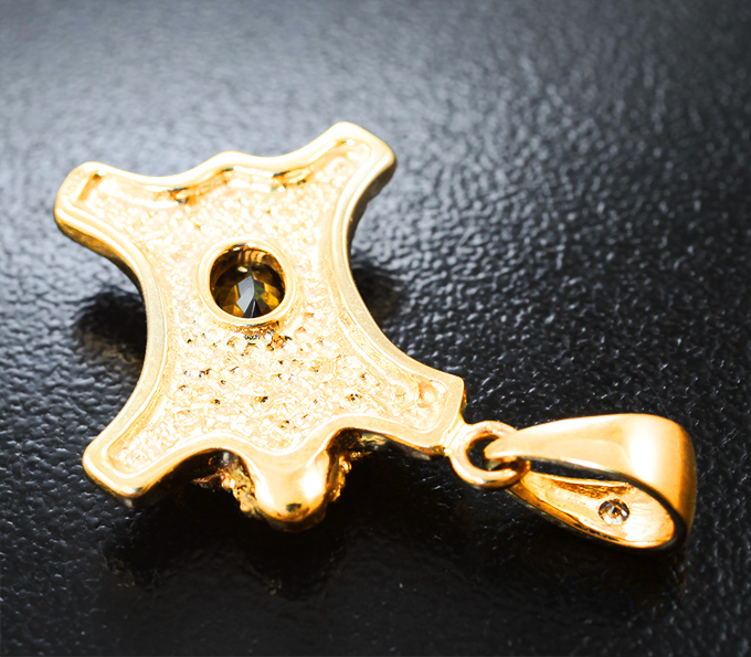 Вашему вниманию предлагается кулон из желтого золота 585 пробы с насыщенным синхалитом высокой чистоты и бриллиантом! Диаметр дополнительной инкрустации 1,5 мм Размеры кулона с петлей 28 х 15 мм. Вес изделия 4,86 г. Ниже приводятся ювелирные характеристики вставок.