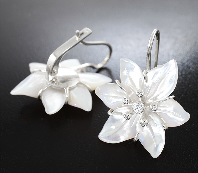 Вашему вниманию предлагаются серьги из стерлингового серебра (925 проба) с резным перламутром и лейкосапфирами! Диаметр дополнительной инкрустации 1 мм и 2,5 мм. Размеры серег с петлей 33 х 26 мм. Вес пары 7,16 г. Ниже приводятся ювелирные характеристики вставок.