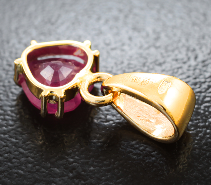 Вашему вниманию предлагается кулон из желтого золота 585 пробы с рубином! Размеры кулона с петлей 17 х 8 мм. Вес изделия 1,25 г. Ниже приводятся ювелирные характеристики вставки.