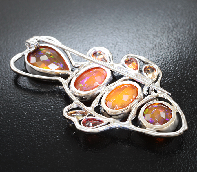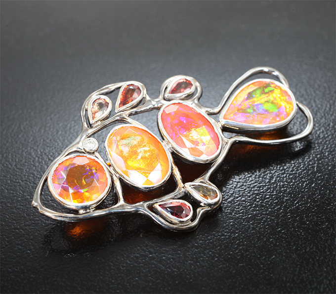 Брошь с ограненными эфиопскими опалами 7,26 карата, сапфирами 1,4 карата и бриллиантом