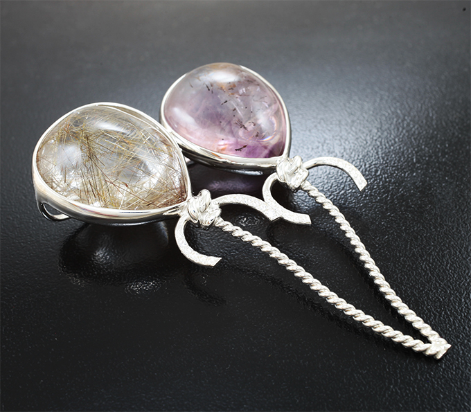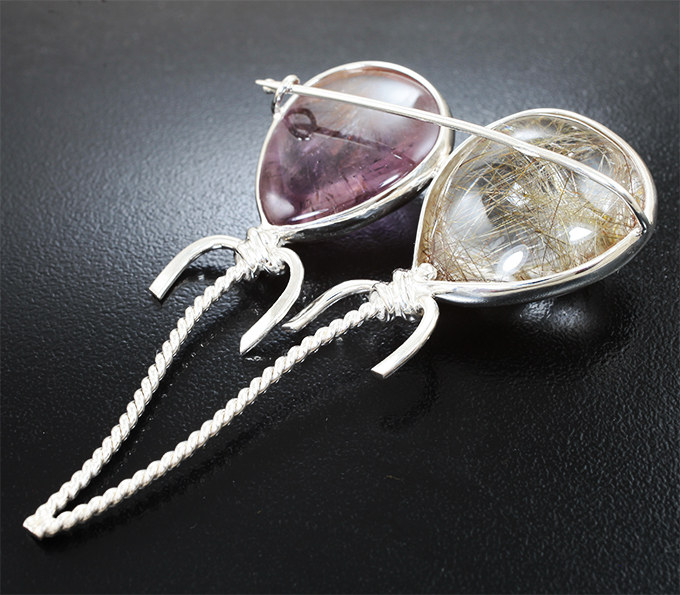 Брошь с аметрином с гетитом 37,77 карата, рутиловым кварцем 56,47 карата и лейкосапфирами