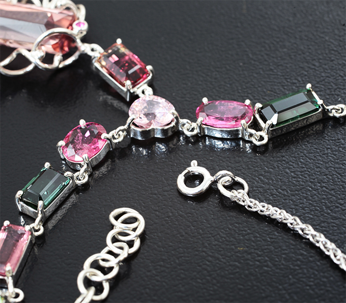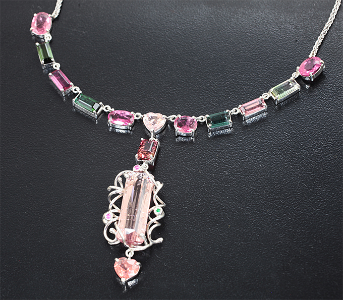 Колье с разноцветными турмалинами 22,62 карата , шпинелями, розовыми сапфирами и цаворитом гранатом