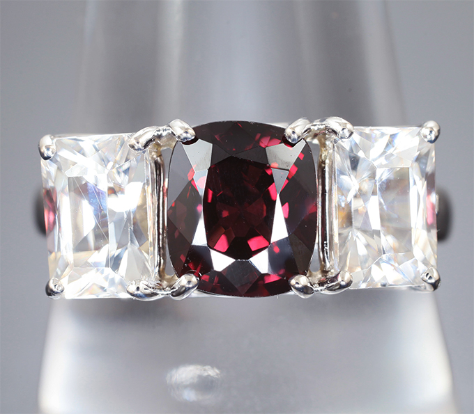 Кольцо с рубиновой шпинелью 1,79 карата и бесцветными цирконами