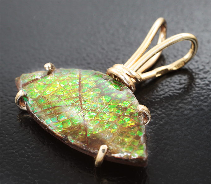 Вашему вниманию предлагается кулон из желтого золота 558 пробы с аммолитом аммонита! Размеры кулона с петлей 22 х 21 мм. Вес изделия 1,81 г. Ниже приводятся ювелирные характеристики вставок.