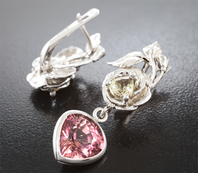 Серьги с цоизитами 1,82 карата и турмалином 3,43 карата