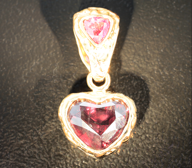 Вашему вниманию предлагается кулон из желтого золота 585 пробы с гранатом эффектной огранки и неоново-розовой шпинелью! Размеры кулона с петлей 22 х 11 мм. Вес изделия 2,41 г. Ниже приводятся ювелирные характеристики вставки.