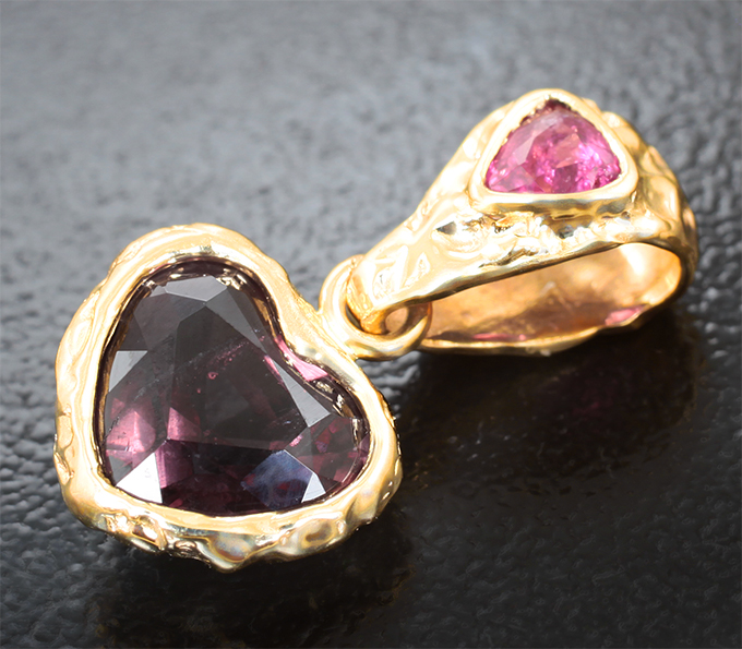 Кулон с гранатом со сменой цвета эффектной огранки 2,99 карата и неоново-розовой шпинелью 0,29 карата