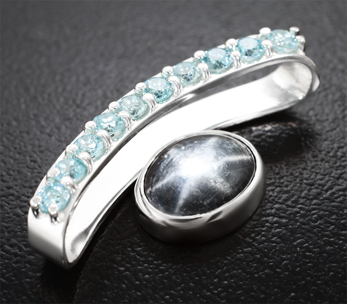 Кулон со звездчатым сапфиром 2,82 карата и цирконами