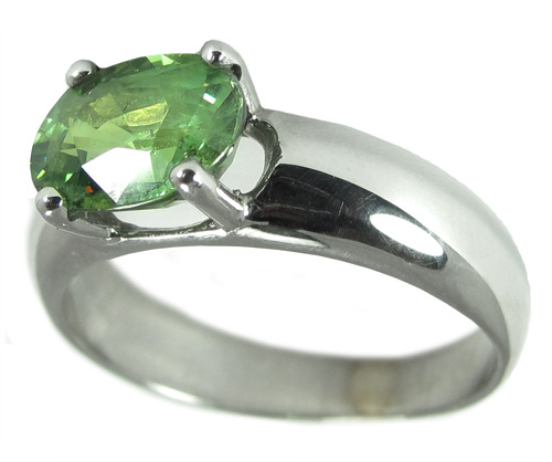 Вашему вниманию предлагается кольцо из белого золота 750 пробы с потрясающим демантоидом! Ширина площадки 6,5 мм, высота 5 мм. Вес изделия 4,26 г. Размер 17.