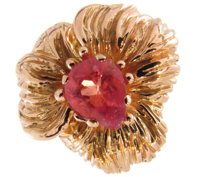 Вашему вниманию предлагается кольцо из розового золота 585 пробы с редким коллекционным бериллом — биксбитом! Ширина площадки 16 мм, высота 6,2 мм. Вес изделия 6,1 г. Размер 17. Ниже приводятся ювелирные характеристики вставки.
