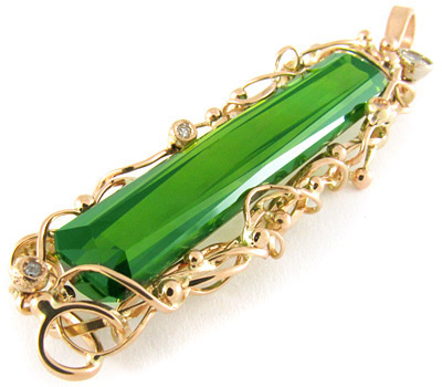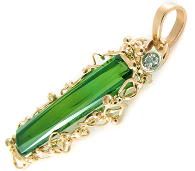 Кулон с чистейшим зеленым турмалином и бриллиантами