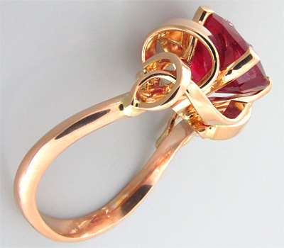 Вашему вниманию предлагается кольцо из золота 585 пробы с рубином, инкрустированным двумя брилиантами! Дизайн кольца выполнен в рамках акции «Дизайн в подарок»! Ширина площадки 12 мм, высота 10 мм. Вес изделия 4,5 г. Размер 15,5. Ниже приводятся ювелирные характеристики вставок.