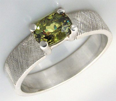 Для нее: кольцо из стерлингового серебра (925 проба) с демантоидом гранатом! Шинка кольца покрыта алмазной насечкой. Ширина площадки 5 мм, высота 4,5 мм. Вес изделия 4,35 г. Размер 19,25. Ниже приводятся ювелирные характеристики вставки.